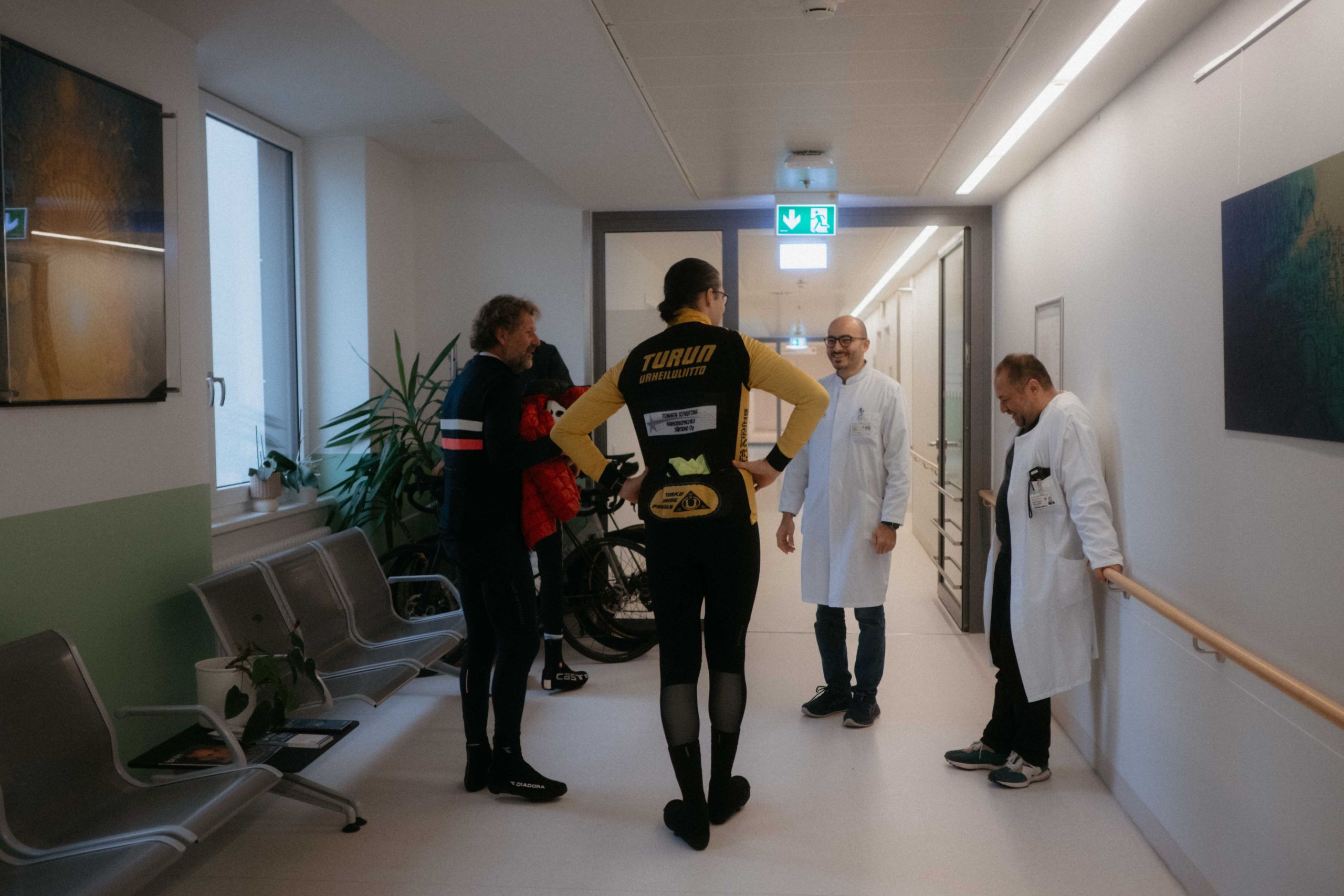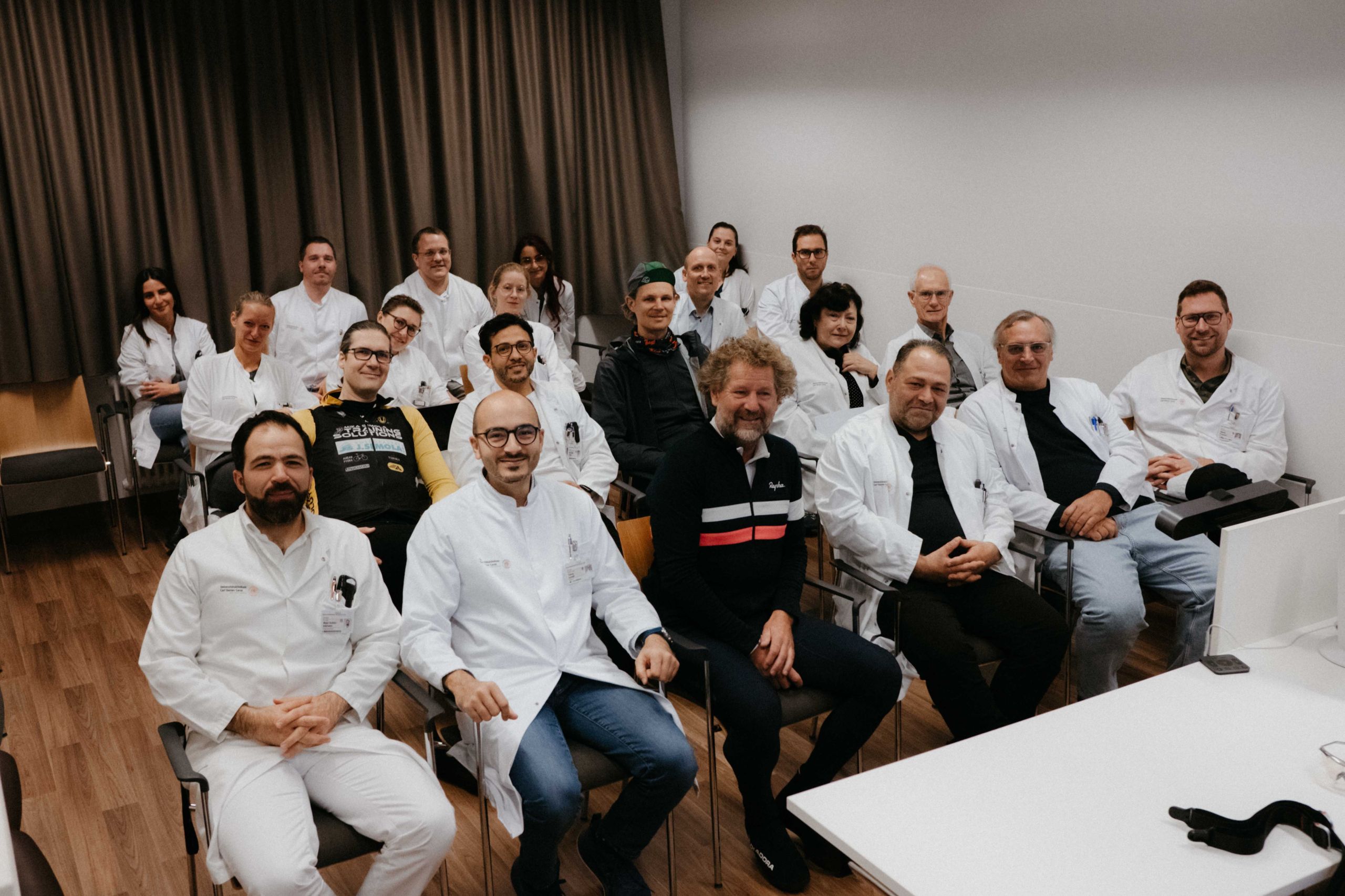 Our second stage was “only” 160 km, so we allowed ourselves a slightly later start. Before turning to the road, we made a stop at the Department of Neurosurgery in Dresden. We were warmly welcomed to follow the morning rounds. Afterwards, Jon gave a talk on traumatic brain injury in cyclists, a topic that sparked lively discussion and many questions from the team. Coffee and cookies with the department head sealed the visit, and soon we were back in the saddle.